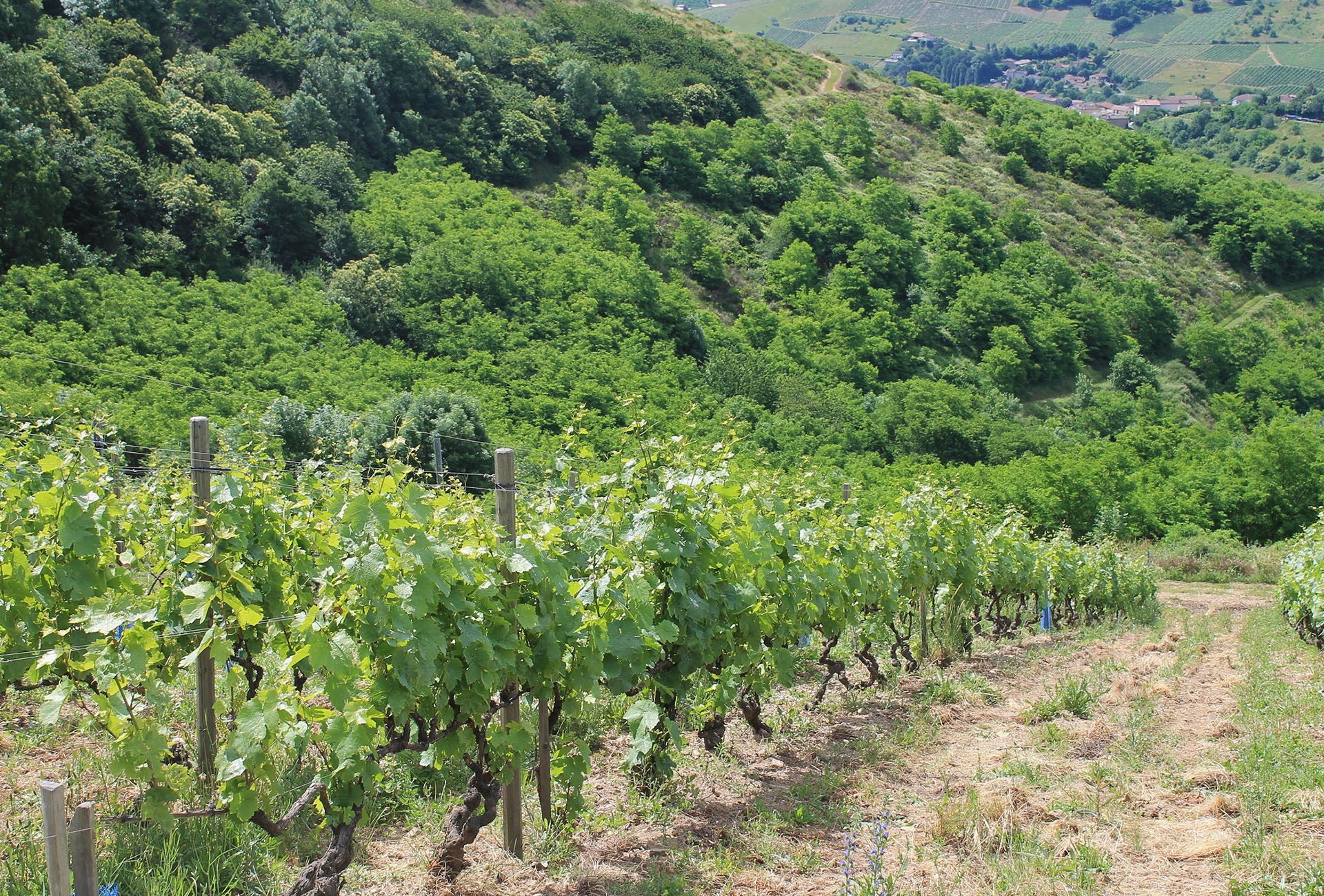 Natürlich hilft auch die Natur selbst mit, denn ihre Weinberge sind alle älter als 50 Jahre, einige Parzellen sogar älter als 75 Jahre und einige Teile sind sogar älter als 100 Jahre. Dies kommt der Qualität voll und ganz zugute. Alle 25 Hektar liegen verstreut über die Gemeinde Le Perréon auf den steilen Hängen (bis zu 40 Grad) aus rosa Granit mit einer dünnen Deckschicht (Couche), die mit Kiesel und Schiefer vermischt ist.