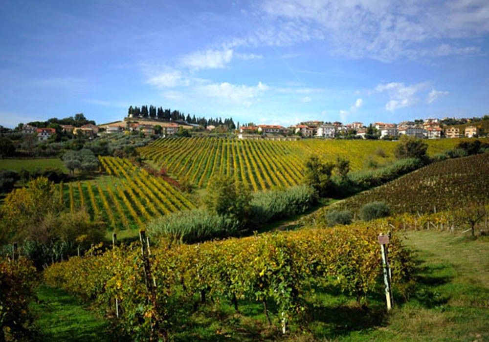 Die 320 Hektar Rebfläche des heutigen Betriebs, die überwiegend auf Schieferboden liegen, befinden sich in den Hügeln von Spinetoli, Montepradone und Porto d'Ascoli. Hier wird mehr Weißwein als Rotwein hergestellt. In den frühen neunziger Jahren des letzten Jahrhunderts wurde beschlossen, auf biologischen Anbau umzustellen. Der Graf war der Meinung, dass der Einsatz von Pestiziden und Insektiziden einen negativen Einfluss auf den Wein hatte. Die Rebstöcke mussten von sich aus stark und vor allem gesund sein, das war für ihn die Grundlage für Qualität. Es war eine einschneidende, aber vor allem mutige Entscheidung, alle 320 Hektar Rebfläche auf einen Schlag auf biologischen Weinbau umzustellen. Dieser Mut wurde 1994 mit einer Zertifizierung belohnt. Graf Saladini Pilastri sieht das Ökosystem, zu dem er gehört, als ein großes Ganzes, in dem die Gesundheit von Menschen, Tieren und Pflanzen (also Trauben) an erster Stelle steht, so formuliert er sein soziales Engagement.